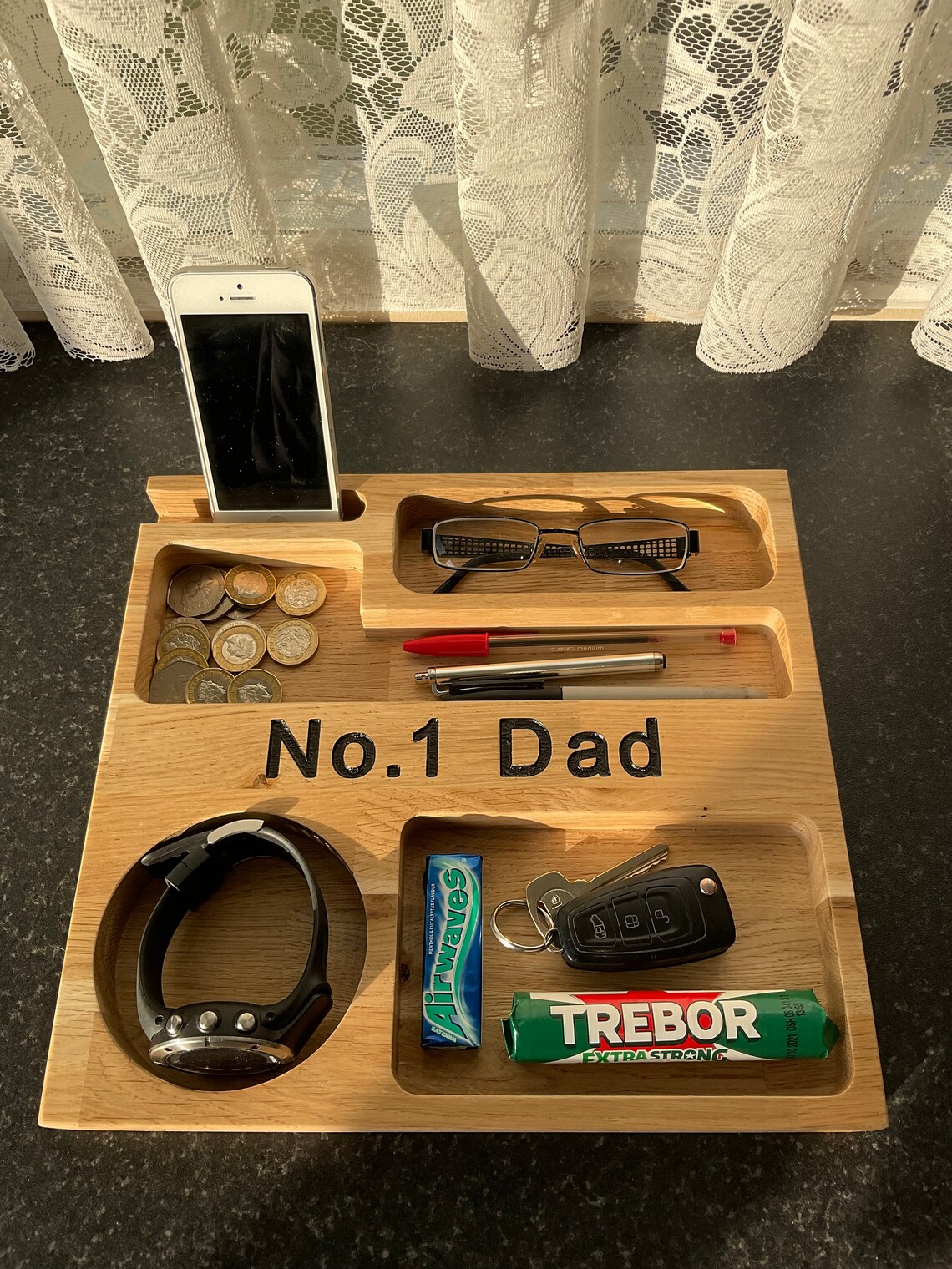 Solid oak No1 Dad personal organiser.